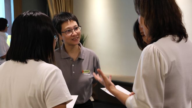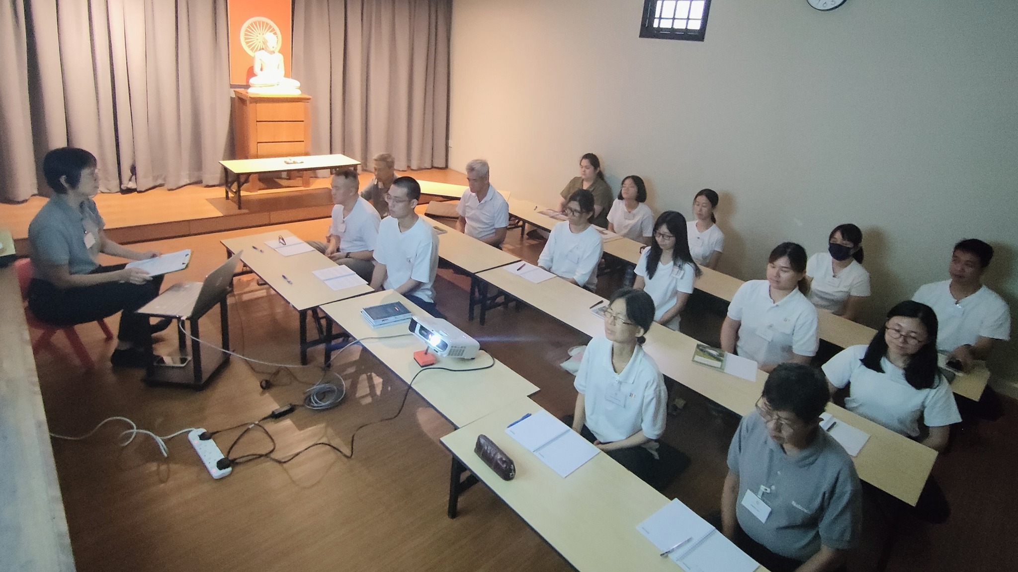 In the Parents Induction Programme (PIP), School Director, Sis. See Hui Shien sharing with parents on the Purpose of Dhamma Learning.