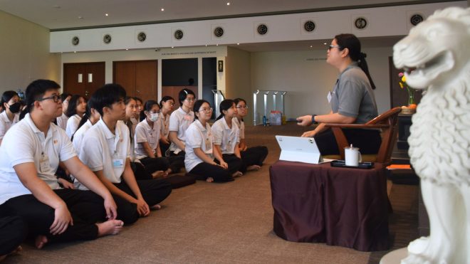 Sis. Buddhini Tan, the President of Nalanda Buddhist Society welcomed the teenage and junior school students and reminded them to spend their Sunday morning meaningfully by putting in right effort in learning.
