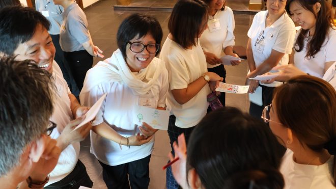 Students getting to know their facilitators – the good friends who will accompany them on this Dhamma learning journey.