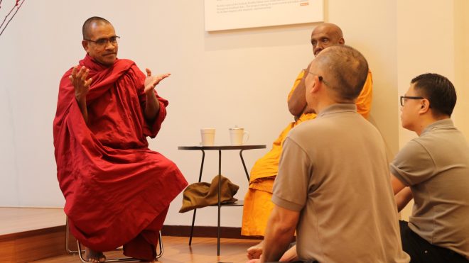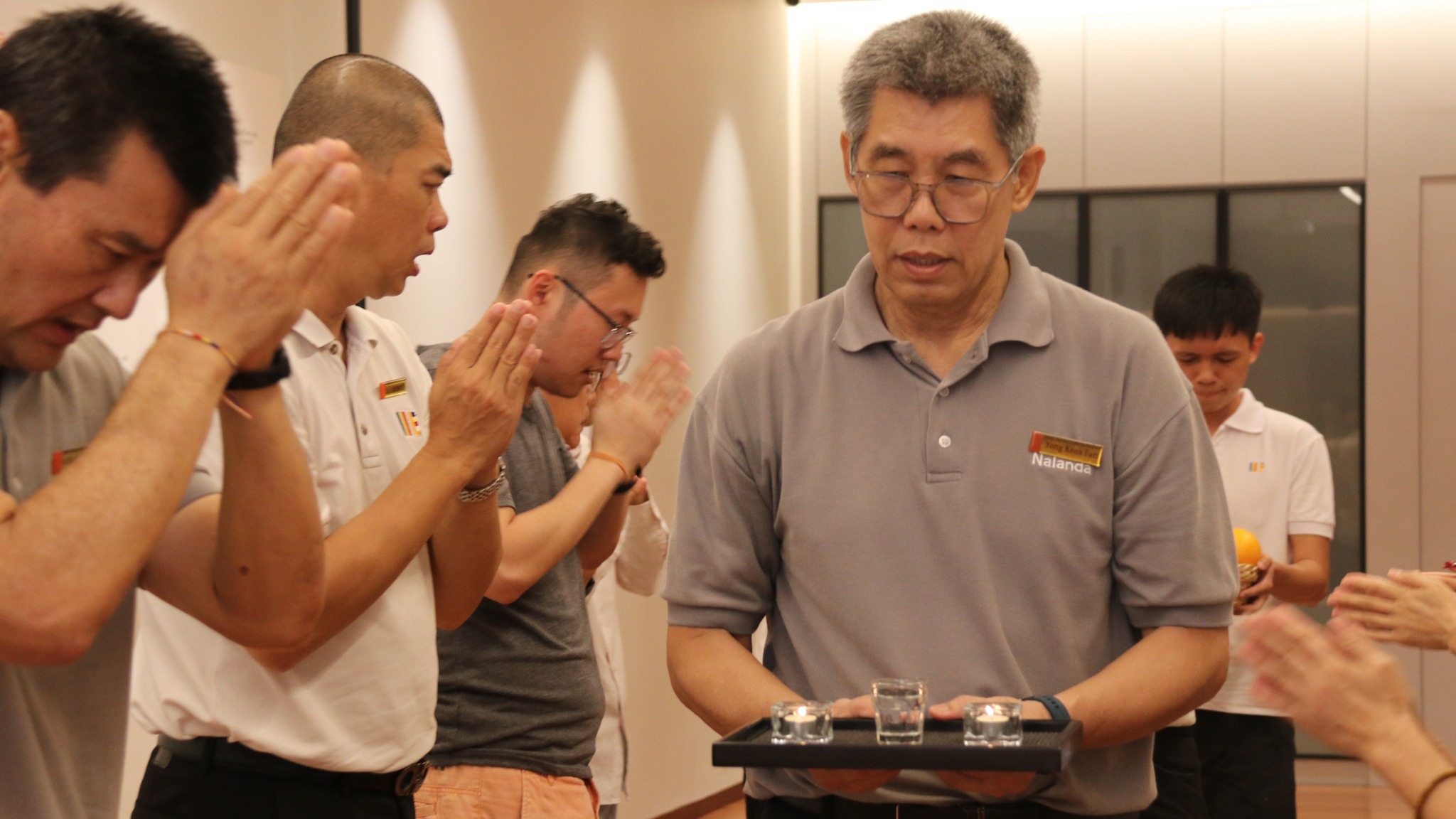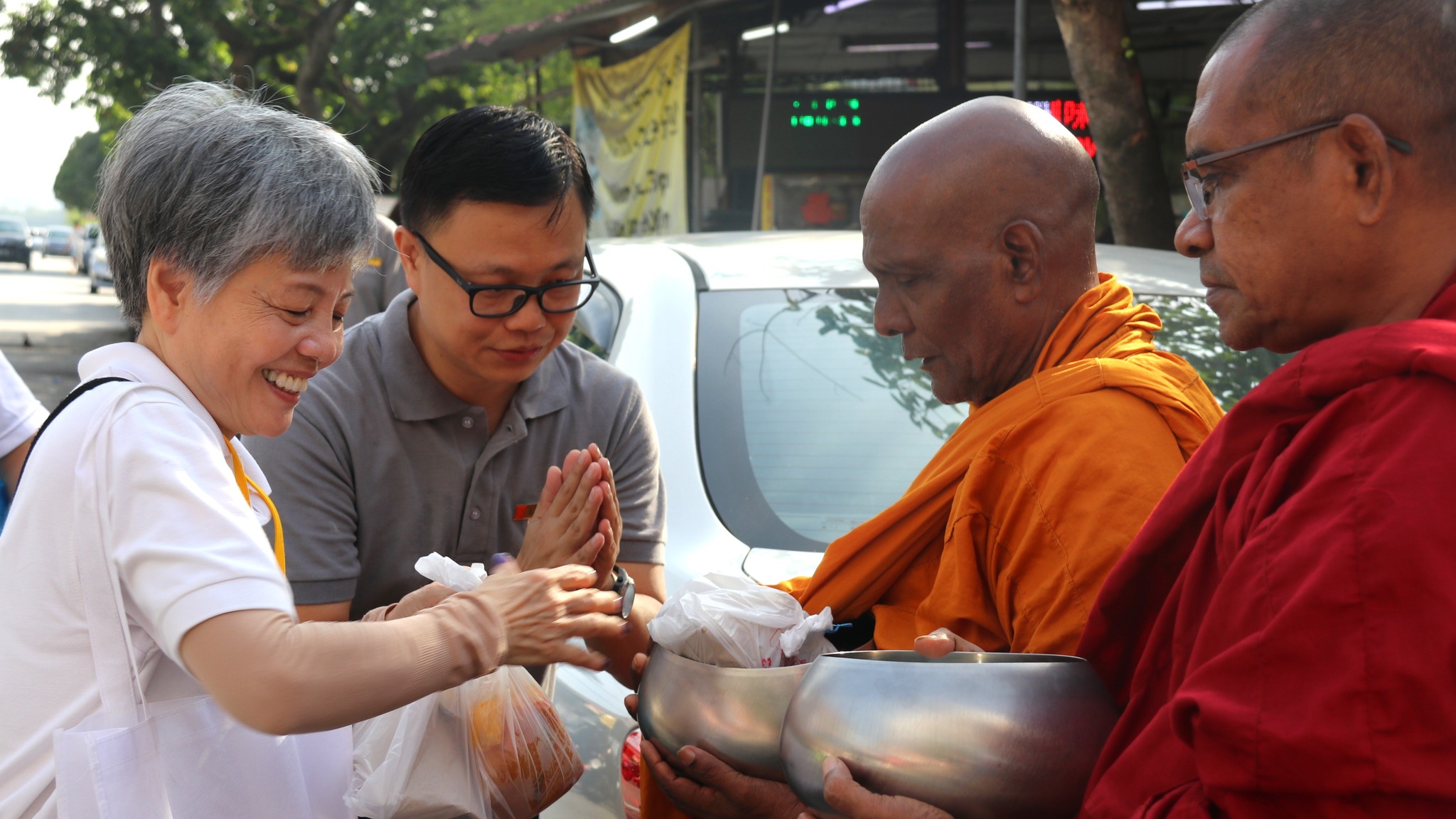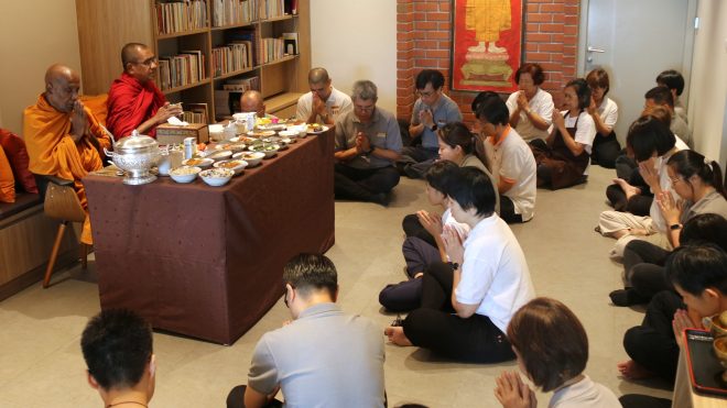 On Saturday 7 March, Nalanda KL Branch members and volunteers hosted the monthly Pindacāra at the OUG and Happy Garden morning markets. As the Sangha members walked mindfully on their alms round, devotees and marketgoers calmly came forward with offerings, creating a heartwarming atmosphere and sight.