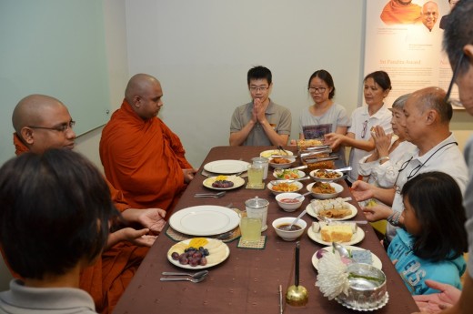 Offering lunch dāna to the venerable monks at NEO Centre Happy Garden.