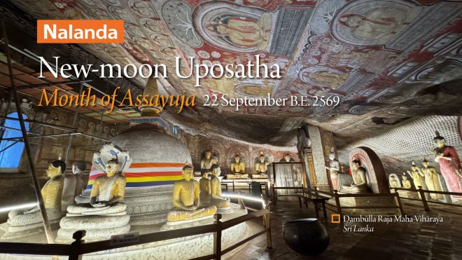 Today is the new-moon day of the ‘Assayuja’ month. It’s a time to dedicate ourselves to strengthen our Dhamma practice through observing the Eight Precepts, meditation practice and listening to Dhamma talks.