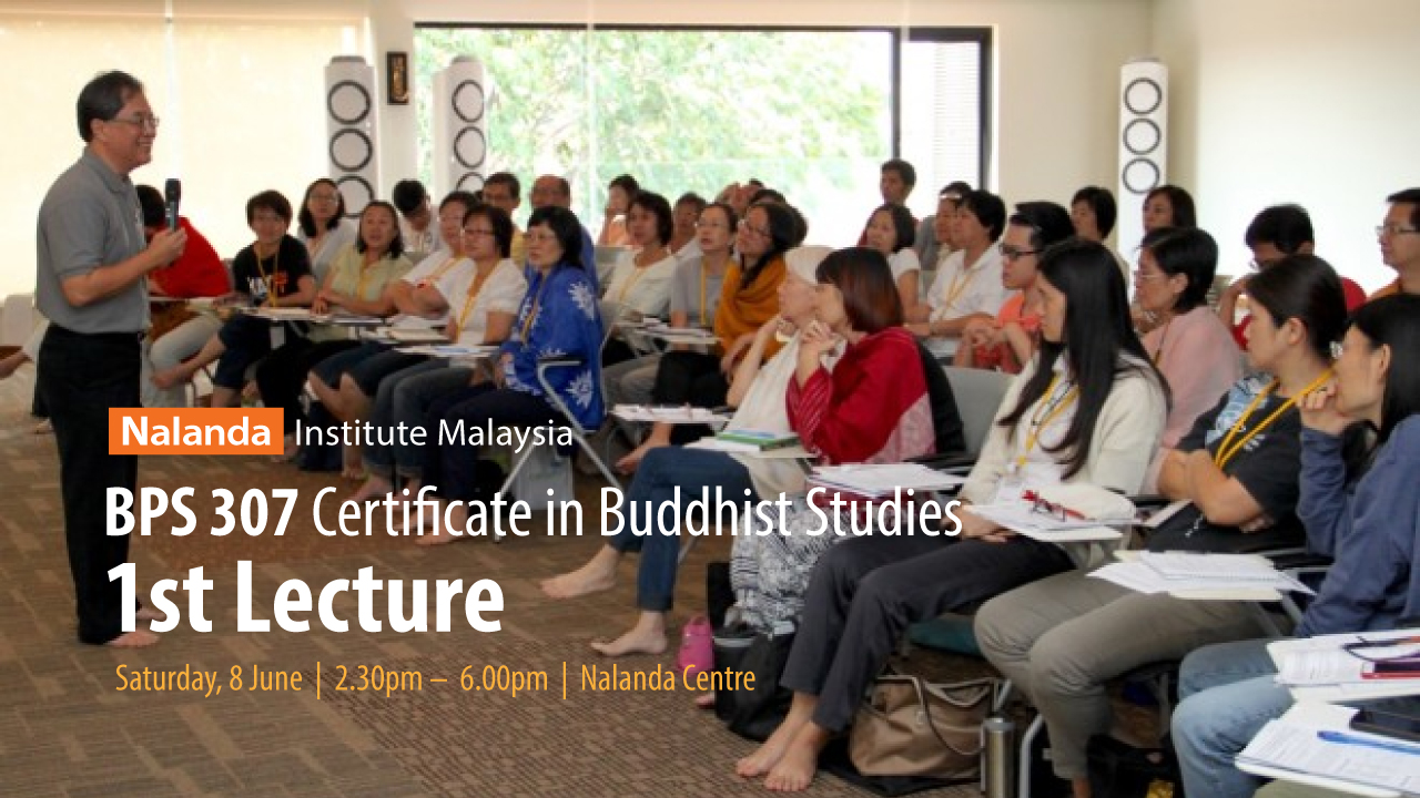 We invite registered participants of BPS 307, Certificate in Buddhist Studies, for the first lecture this Saturday 8 June. The course will be held at Nalanda Centre, Sri Serdang from 2.30pm to 6.00pm.
