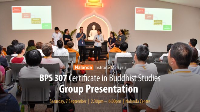 Participants of BPS 307, Certificate in Buddhist Studies, will gather at Nalanda Centre on Saturday 7 September, for their group presentation to their lecturers and fellow students. Having chosen their topics, each group have been working together to plan and carry out their projects in a meaningful way. We look forward to seeing the fruits of their efforts tomorrow.