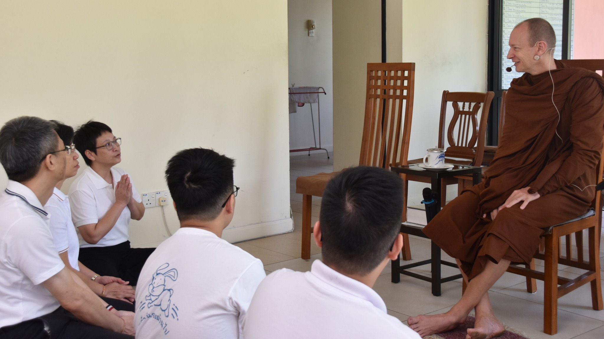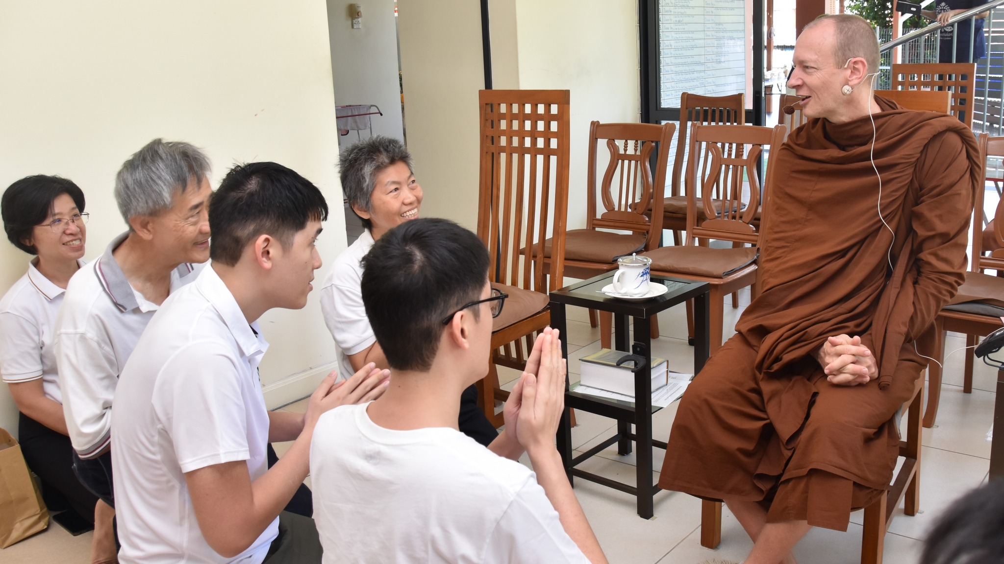 During the visit, the group paid respects to Ven. Ariyadhammika and listened to a Dhamma talk. Venerable shared on the importance, purpose, and benefits of daily chanting. Regular chanting, he explained, helps to deepen faith and devotion, strengthen understanding of the core teachings, enhance focus and mindfulness, and bring blessings and protection. More importantly, it supports inner transformation through growing understanding and insight.