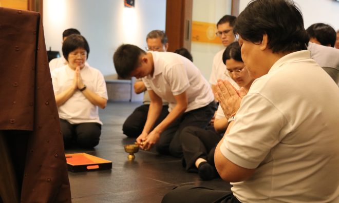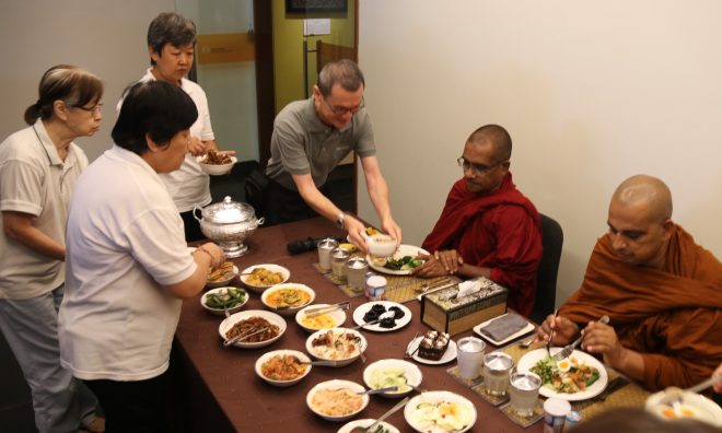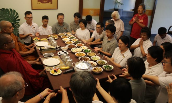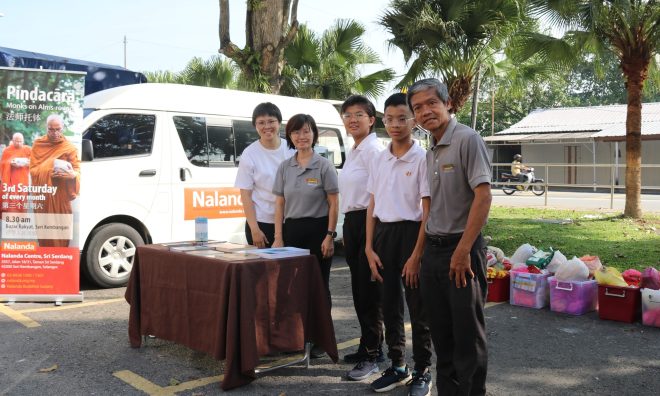 On Saturday 20 September, Nalanda members and volunteers conducted the monthly Pindacāra (monks on alms-round) at the morning markets in Seri Kembangan.  Encouraged by the opportunity to do good, many from the local and market community are regularly participating, joyfully offering food and requisites with faith and gratitude.