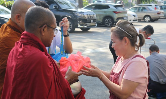 These simple yet profound acts of giving not only nurture compassion and humility but also deepen our own understanding of the Buddha’s teaching on supporting the Sangha community.  The serene presence of monks walking mindfully amidst the bustling marketplace served as a gentle reminder to live with virtue and mindfulness.