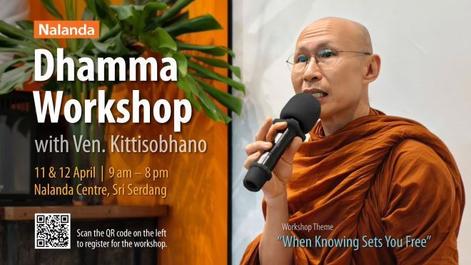 Nalanda Buddhist Society is organising a Dhamma Workshop with Ven. Ajahn Kittisobhano on 11 & 12 April at Nalanda Centre, Sri Serdang. Discover how to live the Truth in daily life and experience true freedom through inner transformation.
