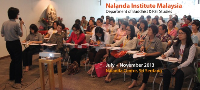 Nalanda Institute Malaysia’s Department of Buddhist & Pali Studies is offering the Certificate in Buddhist Studies (General) course starting in July 2013.  The four modules that will be covered are: