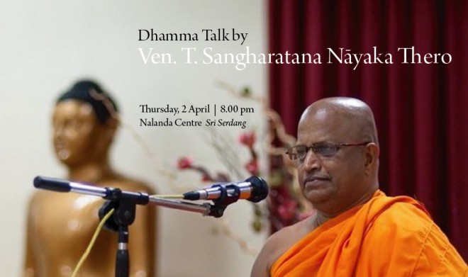 We are honoured to host Ven. T. Sangharatana Nāyaka Thero for a Dhamma talk with the topic “Good Practitioners” at Nalanda Centre this Thursday, 2 April.