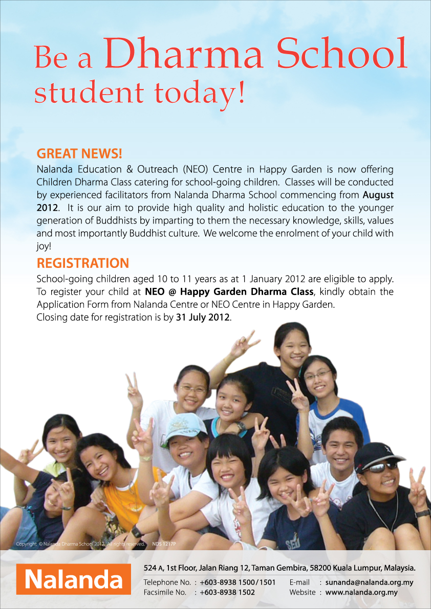 If you have children aged 10-11 years and you would like them to learn how to be a good, dynamic and motivated young Buddhist, enrol them for the Children Dharma Class at Nalanda!