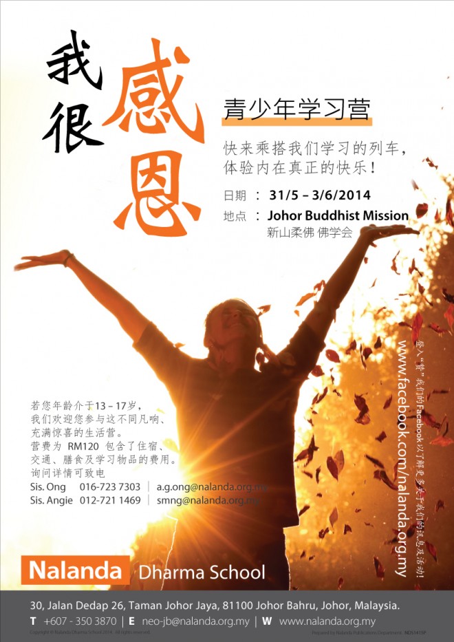 This 4-day Teenagers’ Leadership Camp is organised by Nalanda Dharma School with the theme "我很感恩" ( “I am Grateful” ) at Johor Buddhist Mission, Johor Bahru. The […]