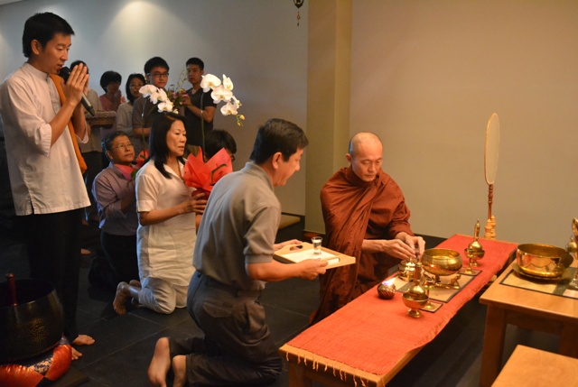 After 3-weeks sojourning at Nalanda House, Venerable Guttacitta left this morning to return to Bagan Serai. Ven. Guttacitta will be observing the Vassana (Rains Retreat) in Perak, starting on 3 August. Many Nalandians were on hand to bid farewell to the venerable at noon, after the customary request for forgiveness and blessings. We wish Ven. Guttacitta good health and much peace. We would also like to thank all Nalandians and devotees who have kindly and generously provided food, transport and other forms of dāna to the venerable during his sojourn. May your goodness lead you to greater joy and peace. Sadhu anumodana!