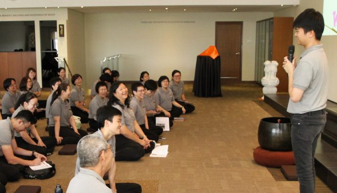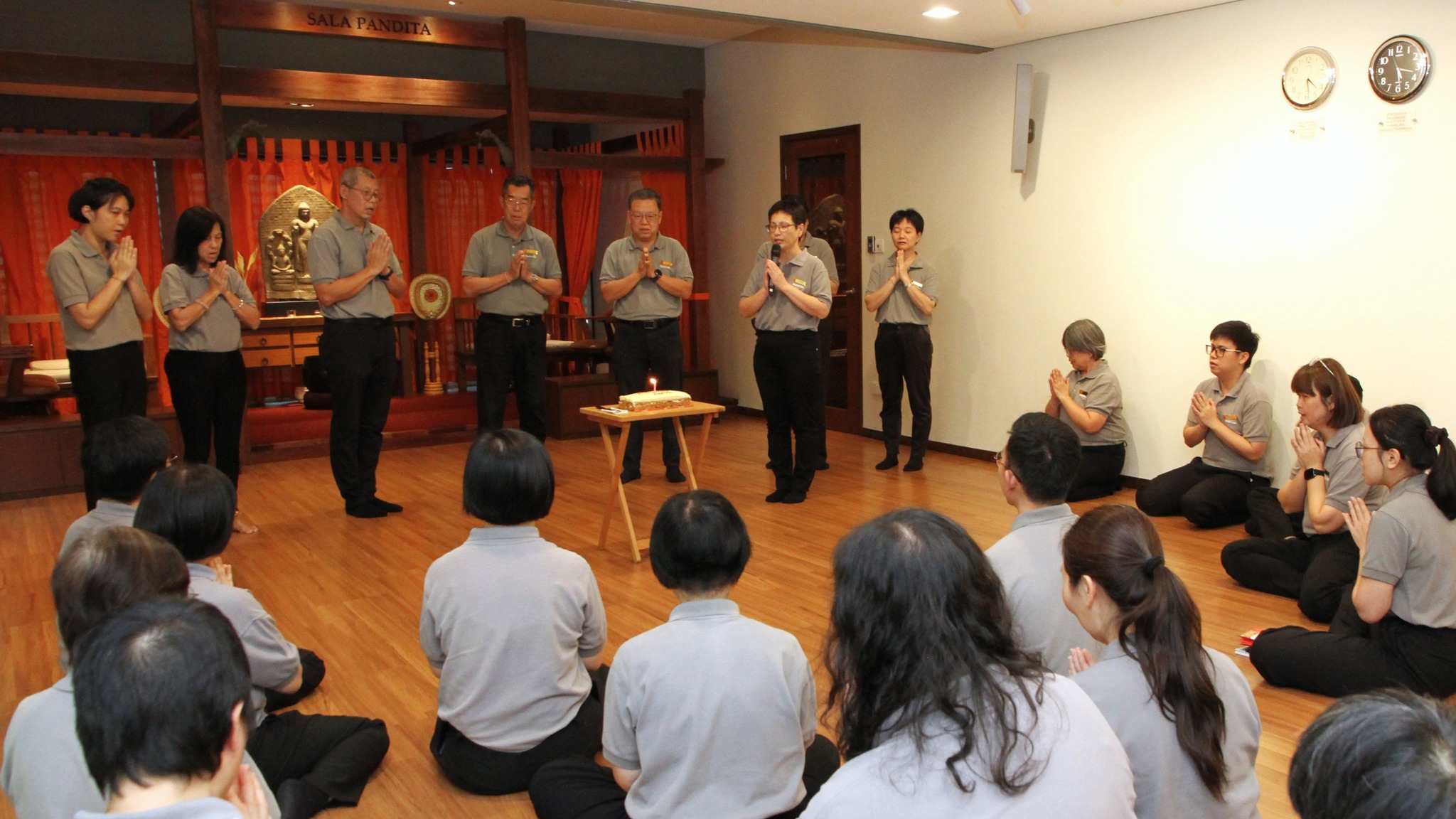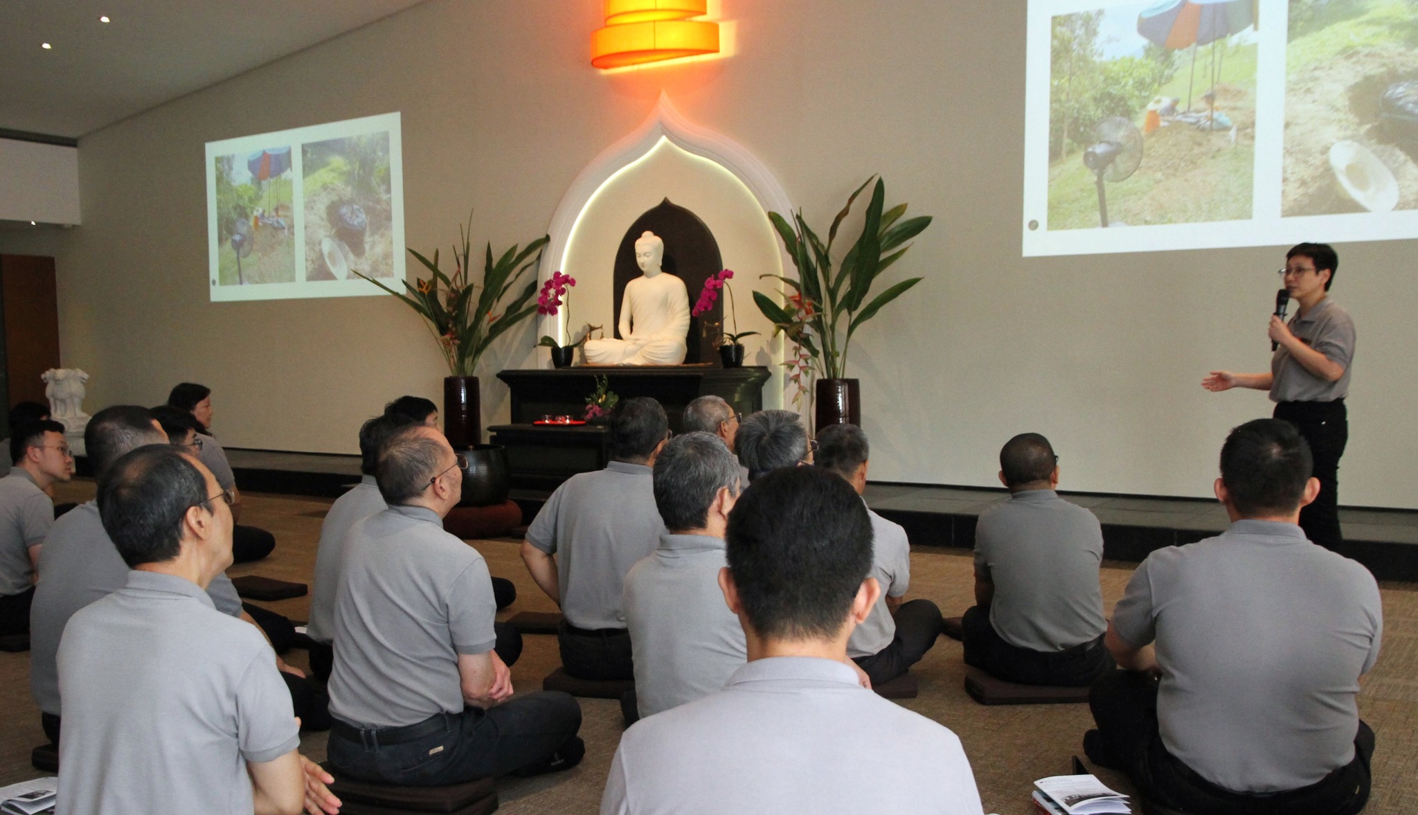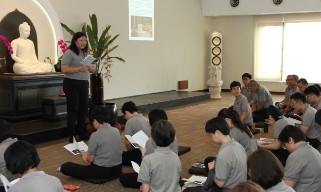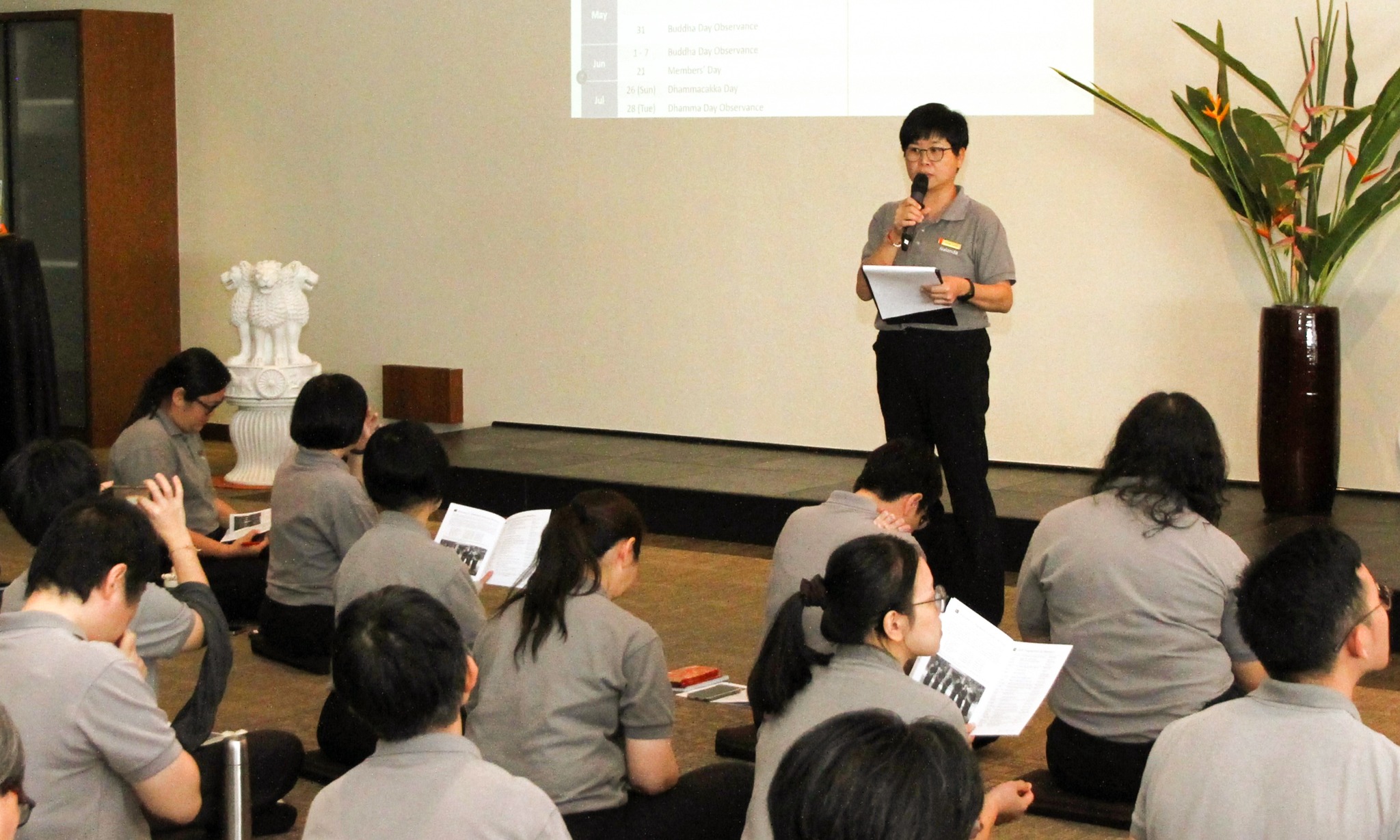 Commencing the programme with offerings and chanting. Members also recite Nalanda’s Vision & Mission, as well as an Invocation for Meetings.