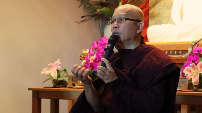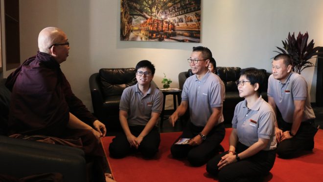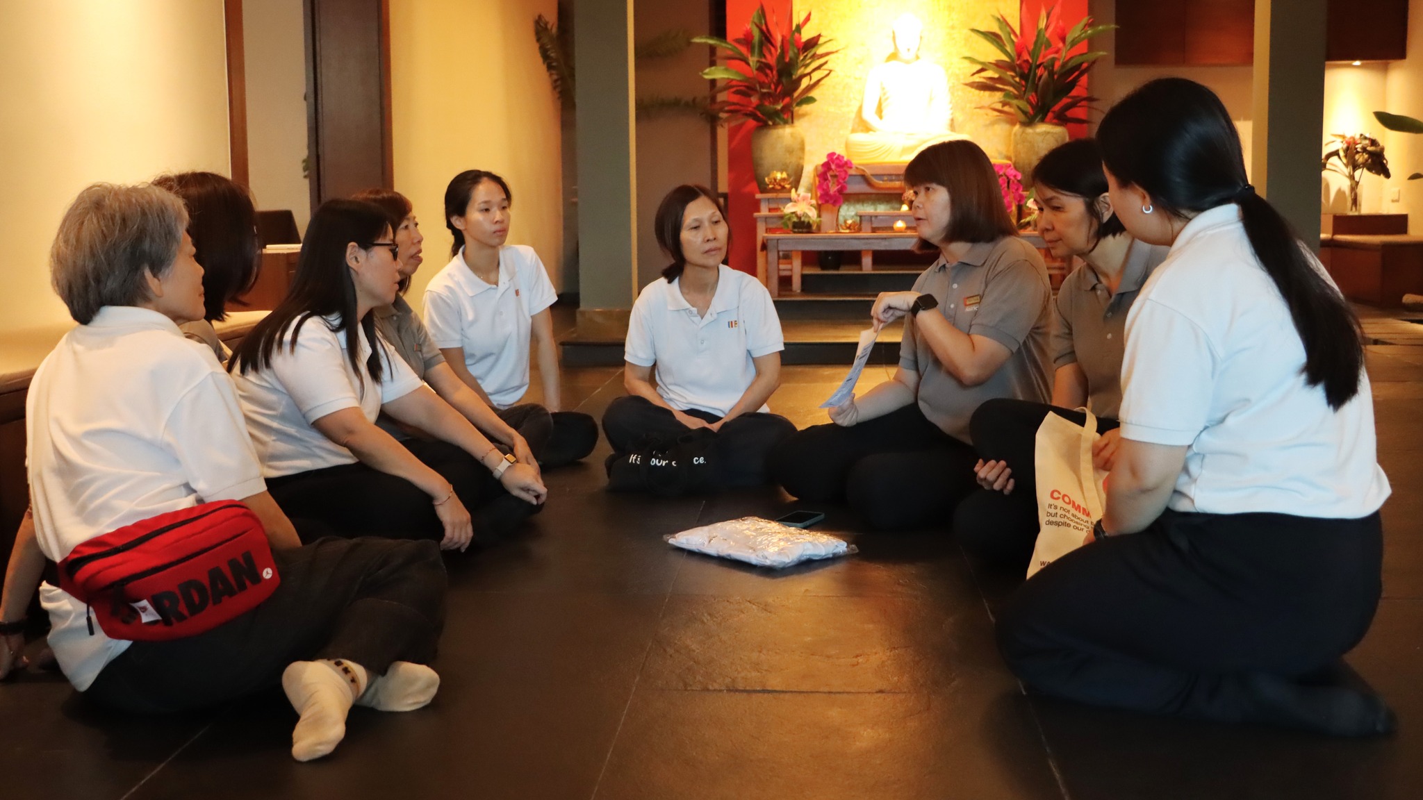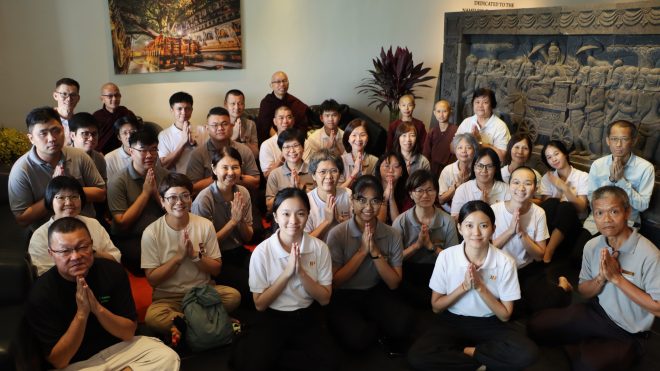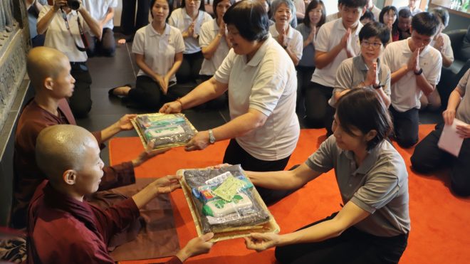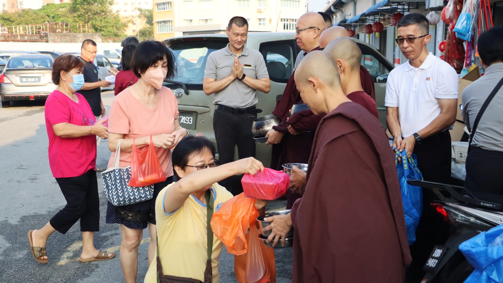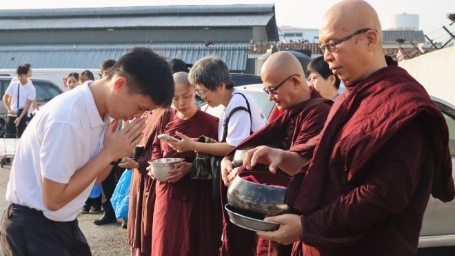 Following the alms-round, Ven. Paññasami gave a Dhamma talk emphasising the importance of harmony among volunteers, rejoicing in wholesome deeds, and inspiring more people to learn the Buddha-Dhamma.