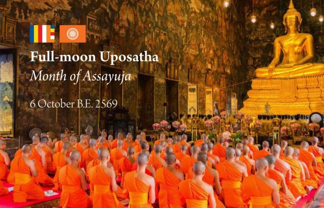 Today is the full moon of the ‘Assayuja’ month, a significant Buddhist observance marking the conclusion of the three-month Rains Retreat (‘Vassana’) for Theravāda monks. On this sacred Uposatha day, let us come together in faith and devotion to engage in wholesome practices – observing the Eight Precepts, cultivating mindfulness through meditation, chanting, and offering alms to the monastic community.