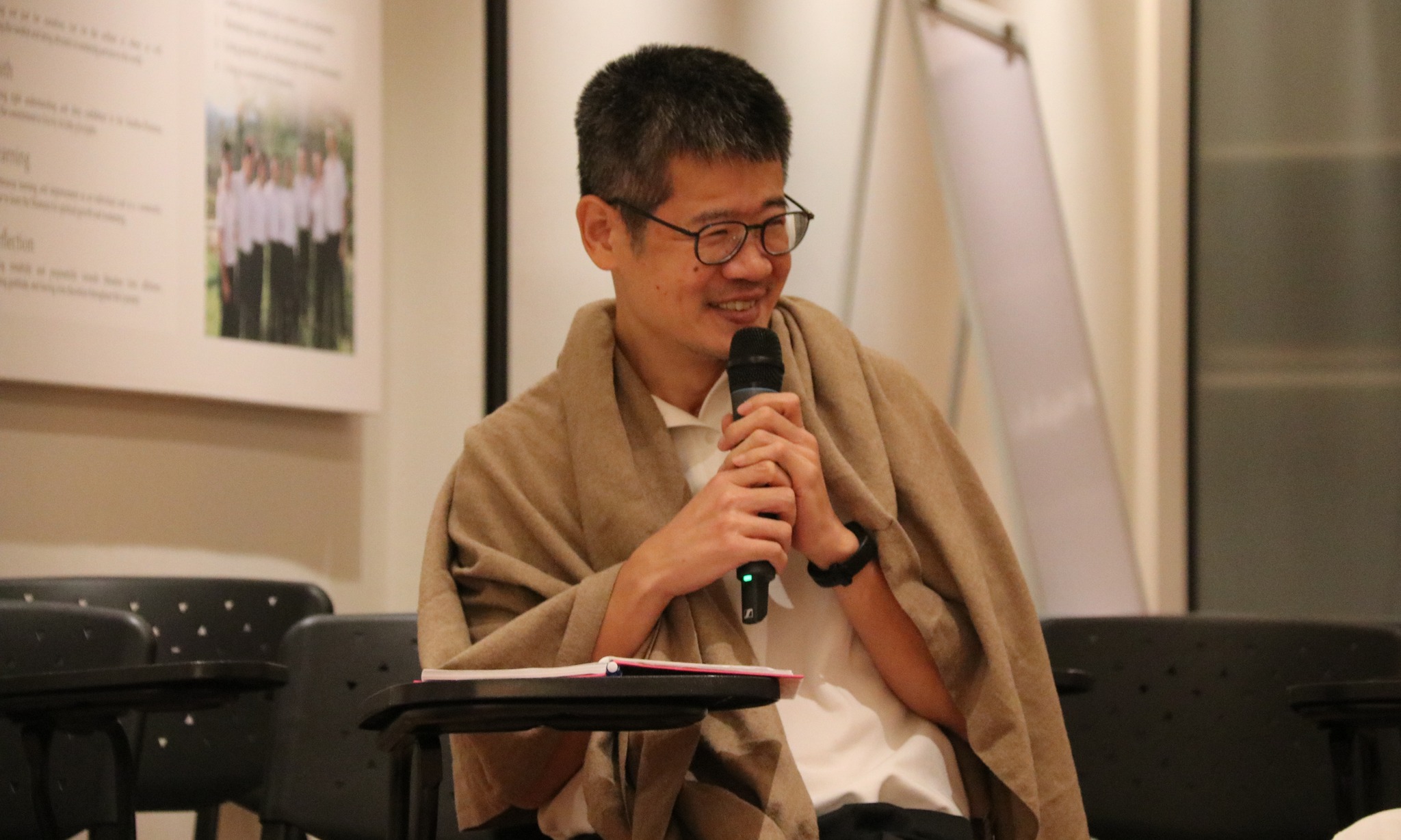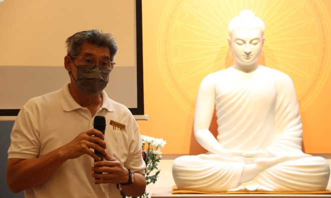 Bro. Ooi Choong Li shared his journey of service, emphasizing the importance of facing challenges with a positive mind and cultivating mindfulness in all acts of service.