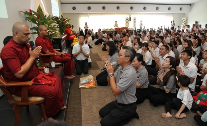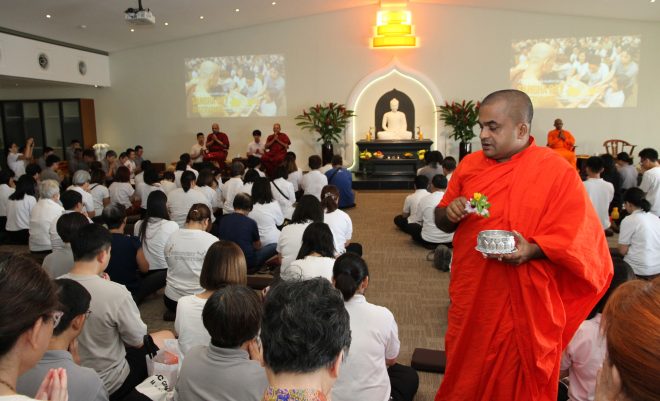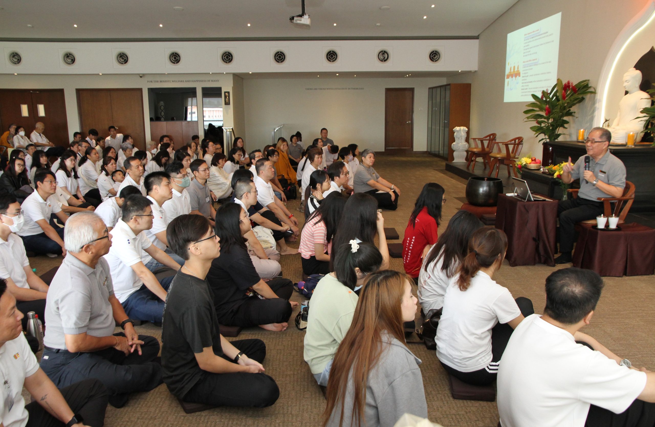 On Sunday 9 November, Nalanda members and devotees gathered for the commemoration of the annual ‘Sangha Day’ at Nalanda Centre. The service started with meditation, offerings, chanting, followed by Dhamma talks in English and Mandarin by Bro. Tan Siang Chye and Sis. Nandinī Tan on the indispensable role of the Sangha in our spiritual journey. Their reflections reminded us of the noble aspirations of the monastic community and the importance of lay support in sustaining their noble pursuit.