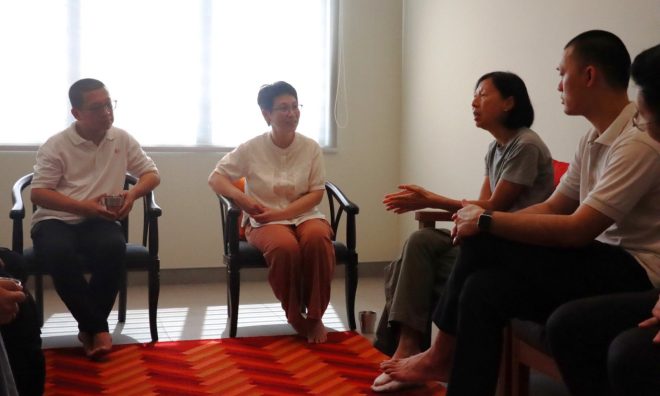The group had an exchange with Sis. Nandinī Tan and Bro. Vincent Lim to understand each other more deeply and discuss future collaborations and support for the newly-founded group. Four Nalanda youths then hosted the group for a tour of Wisdom Park as well as lunch, forging friendship and camaraderie.