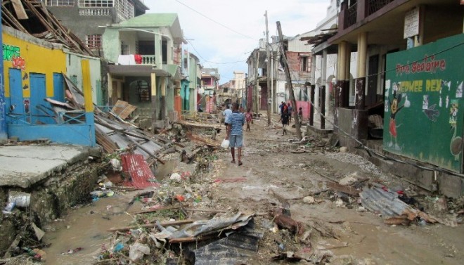 This photograph shows what used to be the town of Jeremie in northern Haiti (Population: 31,000), which was almost completely destroyed by the hurricane.
