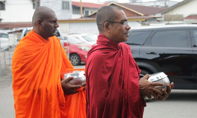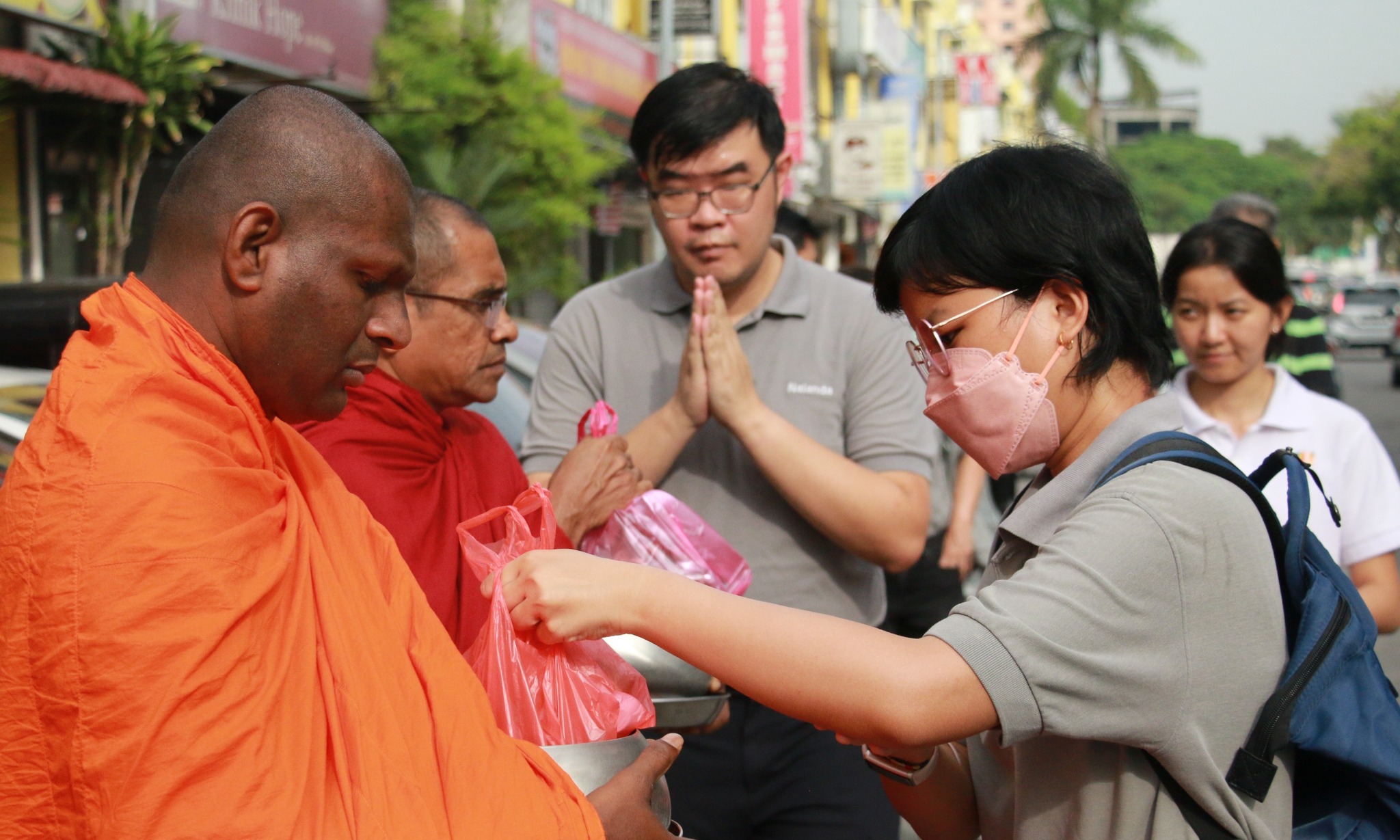 Volunteers took time to inform curious onlookers about the purpose of Pindacāra and encouraged them to participate.  Some who have been observing this activity for months now joined in with deeper understanding and faith.