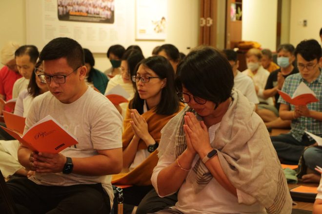 Members and devotees listen attentively and are grateful for the opportunity to learn from Luang Por in person.