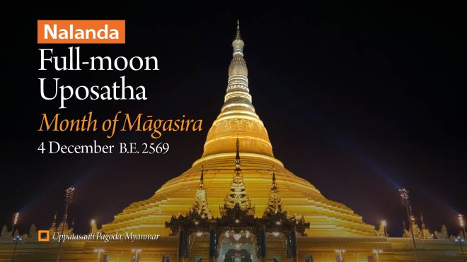 Today is the full-moon Uposatha Day of the month of Māgasira.  On this Uposatha day, we deepen our commitment to Dhamma practice by observing the Eight Precepts, engaging in meditation and reflecting on the noble qualities exemplified by this great disciple of the Buddha.