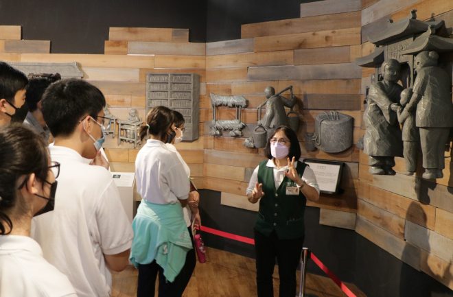 Students reading the details of exhibits in Johor Bahru Chinese Heritage Museum to search for answers and understand the history.