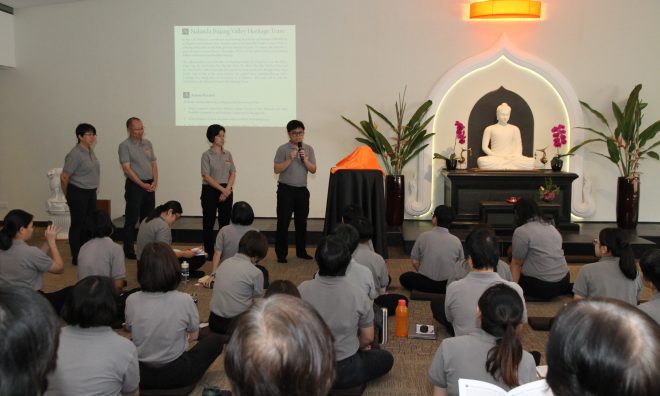 The eight-member team, led by Bro. Yeo Disheng includes Dr. Song Wai Leng, Bro. Khaw Seng Giap, Sis. Sandy Lim, Bro. Ng Eek Chon, Sis. Mary Ooi, Bro. Aw Jian Hau, and Sis. Lim Cai Pei.  After 13 months of research, the team produced a Bujang Valley Tour Guide Handbook, now serving as the main reference for guided tours.  The team officially established as the Nalanda Bujang Valley Heritage Team.