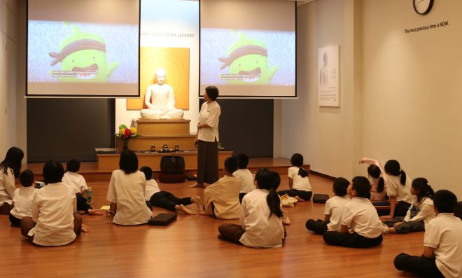 Children have learning with their friends, understanding Dhamma through interactive and engaging sharing.