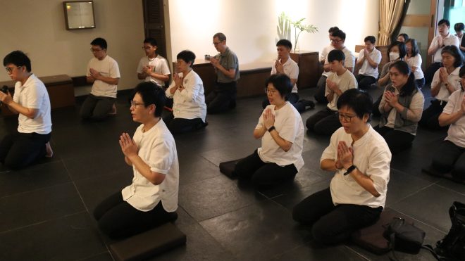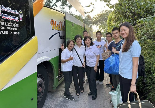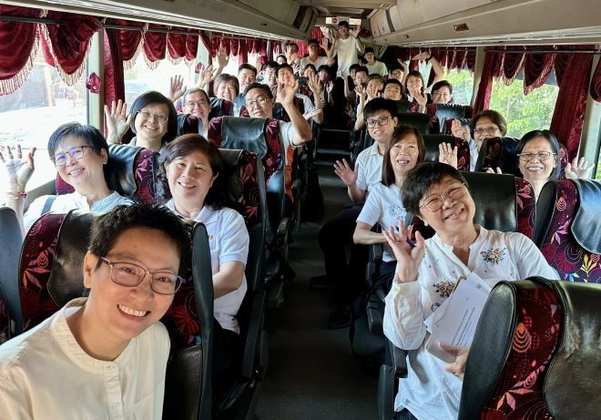 The bus has just left Nalanda Centre and is now on the way to NEO Centre in Johor Bahru. Early this morning, Nalanda members and volunteers from Serdang and K.L. branch together with Dhamma School facilitators and students gathered at Sri Serdang to travel down south in support of Nalanda J.B. Branch’s Family Fun Fair, which will be from 8am to 2pm tomorrow, Sunday 21 September at Taman Johor Jaya.
