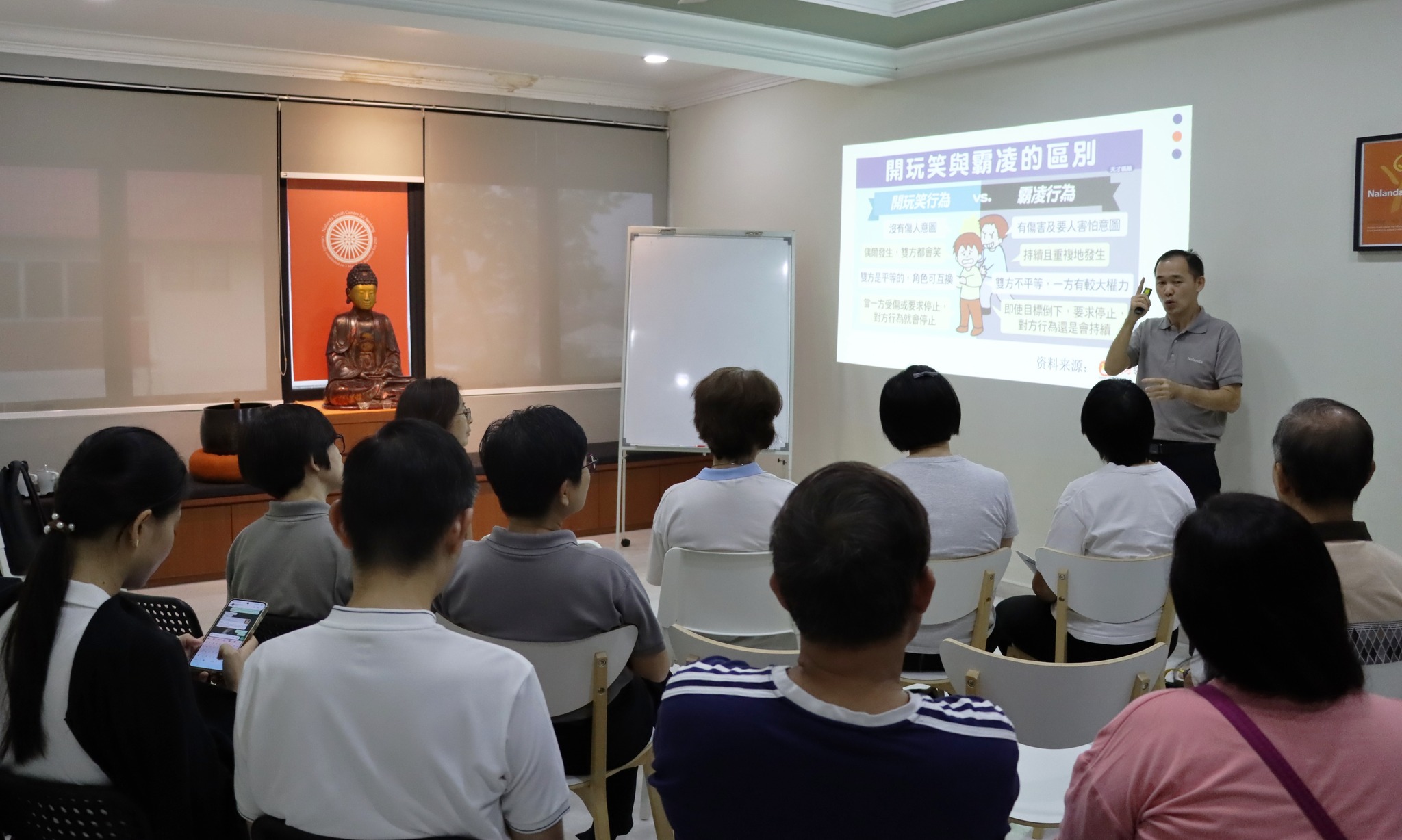 On Sunday 12 October, Nalanda Free School organised a Parenting Workshop to address a growing concern among families on how to respond when a child faces bullying at school. Bro. Aggaphala Yap, a qualified counsellor, led the session with clarity, first explaining the difference between playful teasing and serious bullying, and reminding parents to always listen attentively when a child speaks up.