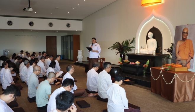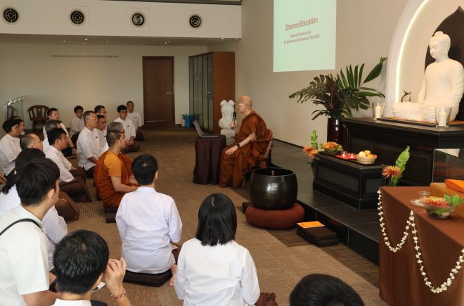 In conjunction with the memorial observance, Ven. Prof. K. L. Dhammajoti delivered a Dhamma teaching. He reflected on the late Ven. K. Sri Dhammananda’s wisdom and loving care, highlighting that true transformation through the Buddha-Dhamma arises not merely from instruction, but also from the inspiration of teachers and elders. He reminded us that Buddhist education is not confined to study or solitary meditation alone, but must also encompass the transformation of emotions and conduct through training and practice.