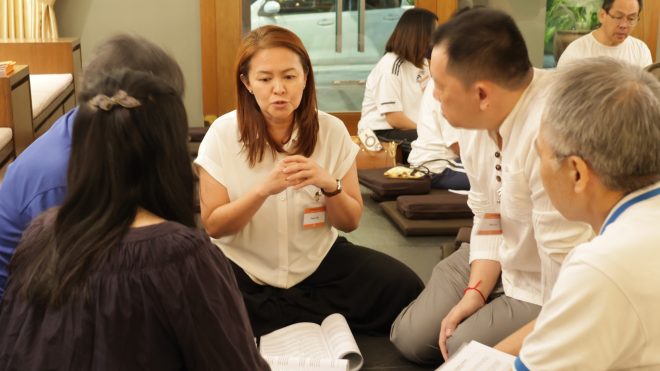 Sis. Sunandā Ong, together with Sis. R. Paruadi, guiding participants of the Metta Learning Sessions.