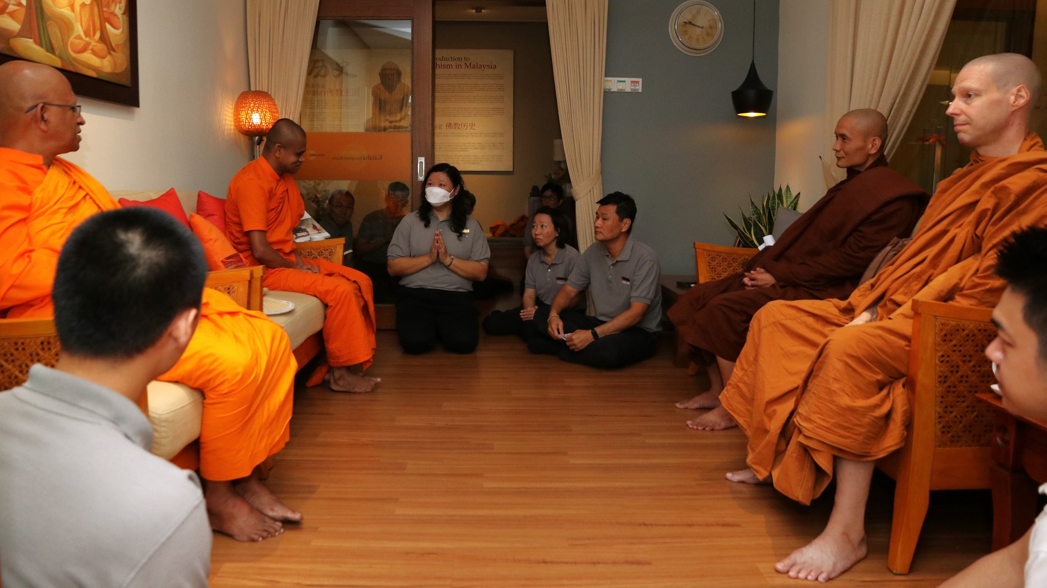 Sis. Nandini Tan delivered the Dhamma talk in Mandarin, giving devotees a better understanding on the significance of Sangha Day and how we can better support the Sangha community.