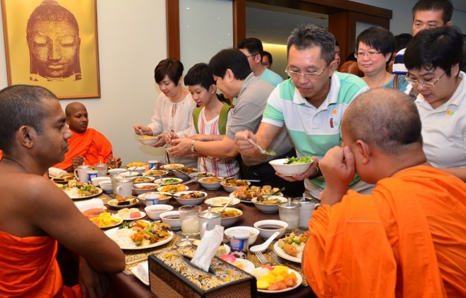 Also in accordance to tradition, the first group of offerors comprised the heads of Nalanda education and management, who represented all Nalandian teachers, members, benefactors, volunteers and supporters. They were followed by other devotees in batches.