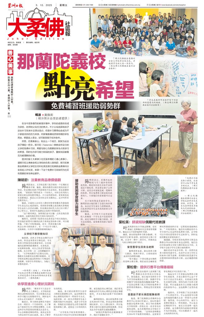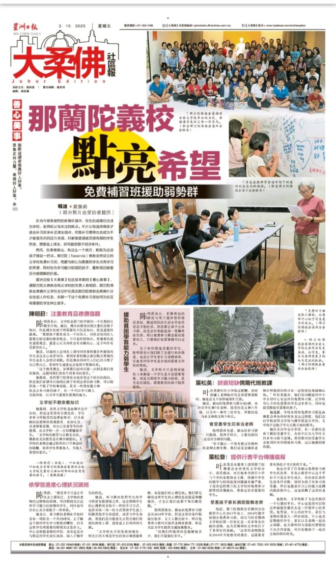 Once again, we sincerely thank Sin Chew Daily for the interview and feature, helping more people understand and support this social education mission. Together, may we continue to plant seeds of wisdom and compassion, benefiting our community and society.