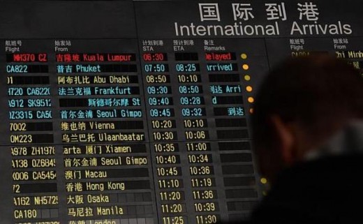 Flight Information Board at Beijing International Airport, 8 March 2014.