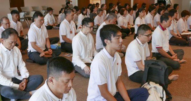 On 13 October, the full-moon Uposatha Day of Assayuja month, over 120 participants devoted a day to Dhamma learning and contemplation in the Eight-Precept Programme at Nalanda Centre. Led by Nalanda founder Bro. Tan, the preceptees learned in greater detail the purpose and practice of this noble observance.