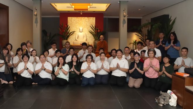 On Friday 2 January, members and devotees gathered to welcome Ajahn Jutindharo on his maiden visit to Nalanda Centre, and to learn from Ajahn in the evening Dhamma talk. Apt advise for the new year, Ajahn reminded us that our worth is beyond just academic or worldly achievements; it is how we make lives better by extending more kindness and friendliness into the world.