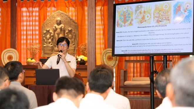 On Sunday 8 March, in line with the monthly theme of deepening our refuge and reflection, Sis. Santī Cheang delivered a timely Dhamma talk on ‘Self-Reliance on the Buddha’s Path’. She reminded devotees and practitioners to take full personal responsibility and apply diligent self-effort towards liberation from suffering.