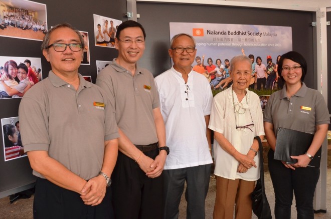 (From right) Nalanda founder and TBCM Adviser Bro. Tan having discussions with TBCM Secretary-General Bro. Lee Kok Cheng, TBCM President Bro. Tan Leng Huat, and former Secretary-General (and current Assistant Secretary) Bro. Ananda Fong.