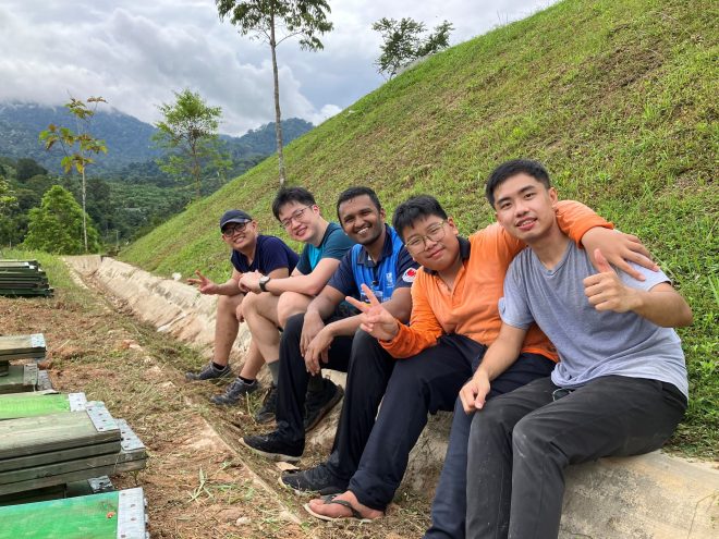 The tree planting team had a challenging service of planting trees on the slope, and faced it with teamwork and care.