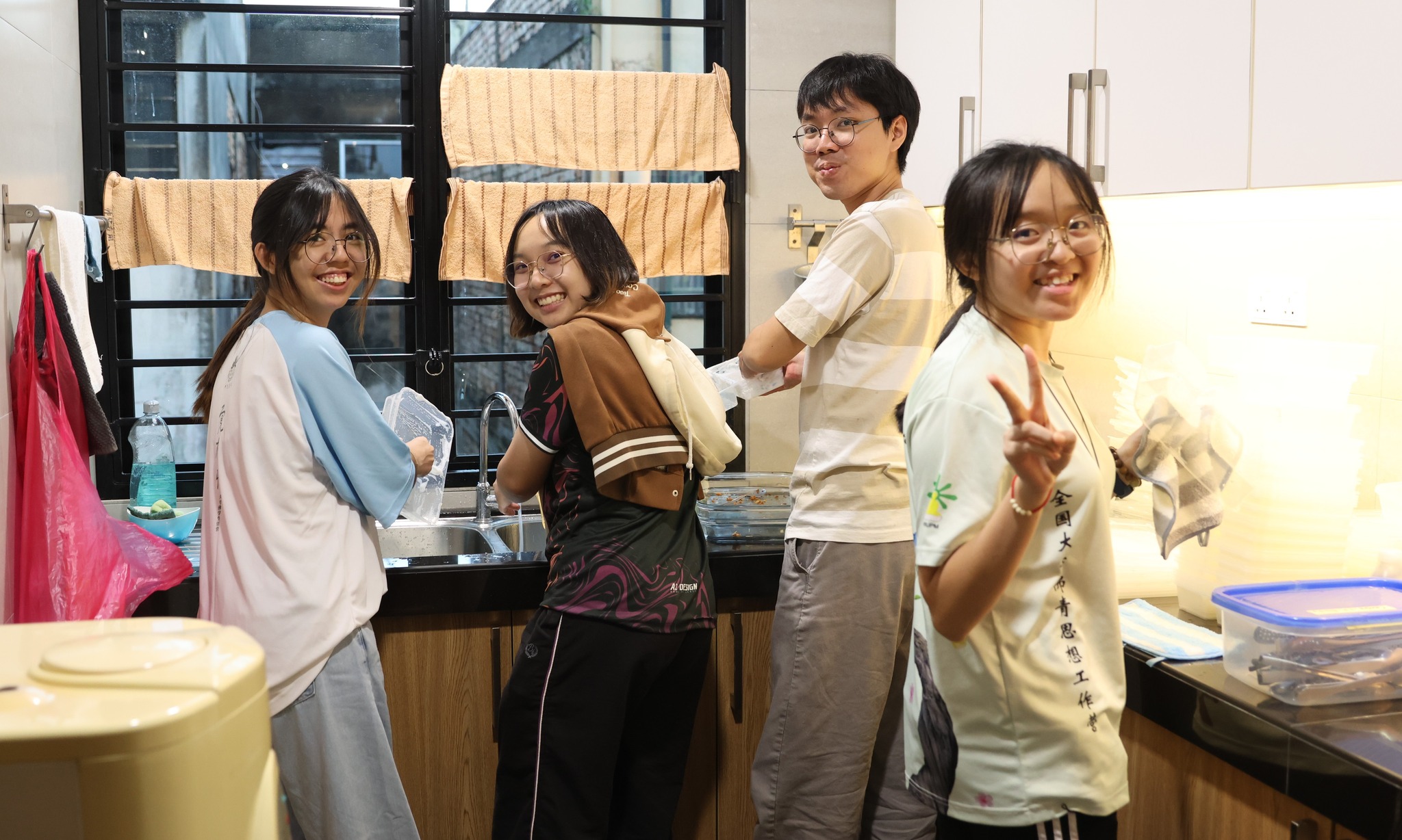 Participants happily help out with chores throughout the learning camp.