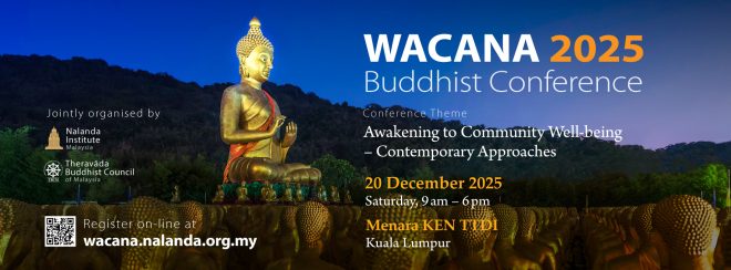Nalanda Institute Malaysia and Theravāda Buddhist Council of Malaysia are organising WACANA 2025 Buddhist Conference on Saturday 20 December, in Menara KEN, TTDI Kuala Lumpur. The theme for this year’s conference is “Awakening to Community Well-being : Contemporary Approaches ”.
