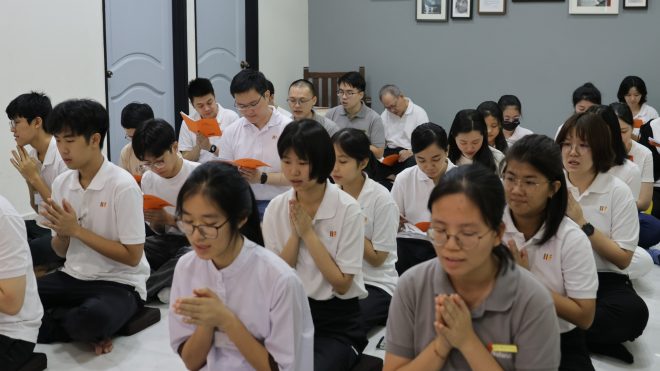 In the Dhamma Chat, Ajahn answered questions and doubts raised by the youths, guiding them in approaching challenges with clarity and the right perspective. He advised youths to learn to be with unpleasant experiences, and to learn to quieten the mind to make wise decisions.